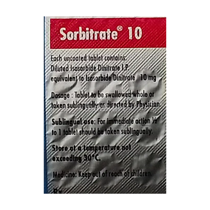 Sorbitrate 10 Tablet contains a medication used to prevent angina (chest pain related to the heart). It works by relaxing and widening the blood vessels, which improves blood flow to the heart, thereby reducing the heart’s workload and oxygen demand. While effective at preventing angina episodes, it is not intended for immediate relief during an ongoing attack. In some cases, it may also help manage heart failure.