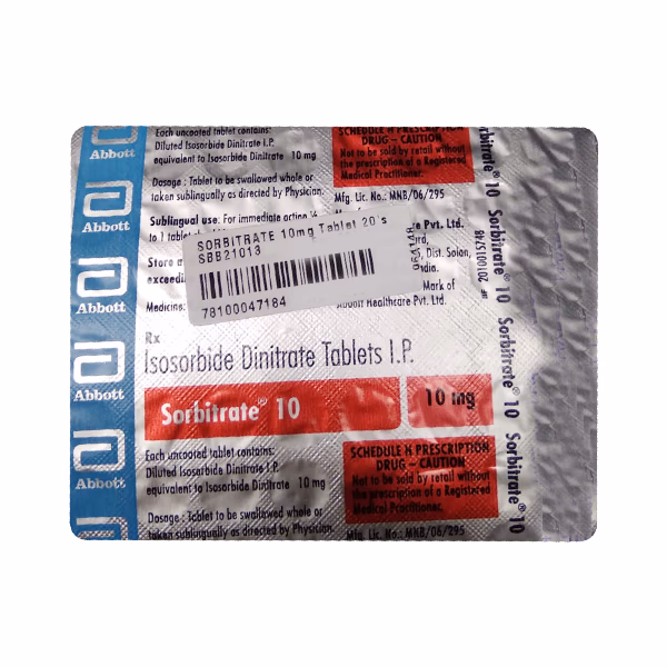 Sorbitrate 10 belongs to the nitrate group of medications. It functions by dilating blood vessels, easing the flow of blood and reducing the heart’s oxygen needs. This prevents the narrowing of arteries that leads to chest pain during physical activity or stress.