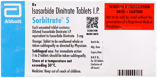 Alcohol consumption should be avoided during treatment as it may worsen side effects like low blood pressure or dizziness. The medicine may be unsafe during pregnancy unless clearly advised by a doctor. It is probably safe to use during breastfeeding under medical supervision. It may cause drowsiness or affect alertness, so avoid driving if such symptoms occur. Sorbitrate 5 Tablet is generally safe for individuals with kidney or liver conditions, though it’s important to consult a doctor before use.