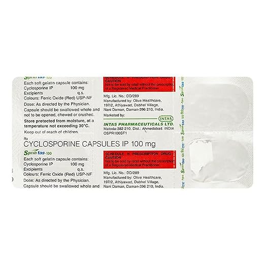 Sprintas 100mg Capsule is prescribed to prevent the body from rejecting a newly transplanted organ, such as the liver, kidney, heart, or bone marrow. It works by suppressing the immune system so it does not attack the transplanted organ. Additionally, it is used in the treatment of severe rheumatoid arthritis, psoriasis, and nephrotic syndrome.