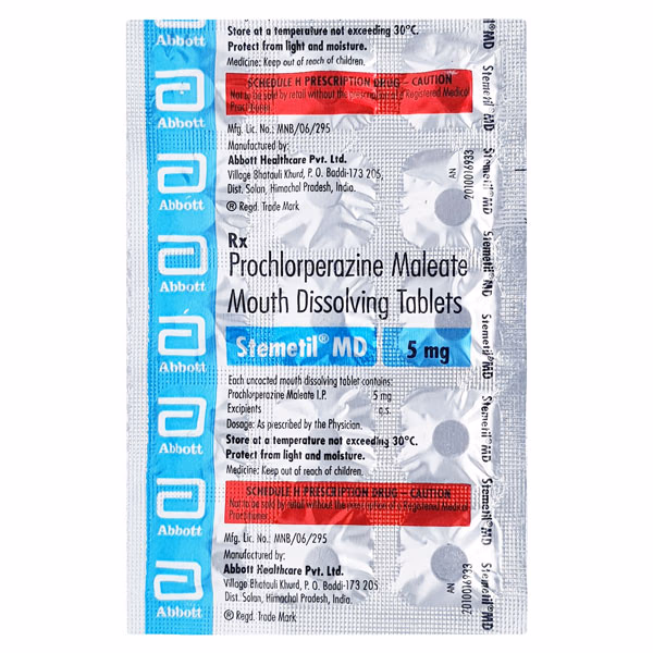 Stemetil MD Tablet is primarily used to manage dizziness (vertigo) associated with ear disorders like Meniere’s syndrome and other labyrinthine conditions. It is also prescribed for nausea, vomiting, migraines, and short-term relief of non-psychotic anxiety.