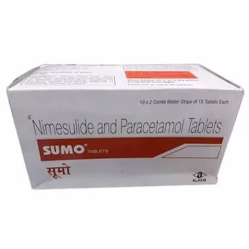 Sumo Tablet contains Nimesulide and Paracetamol. Together, they reduce fever and block pain signals, lowering inflammation and discomfort.