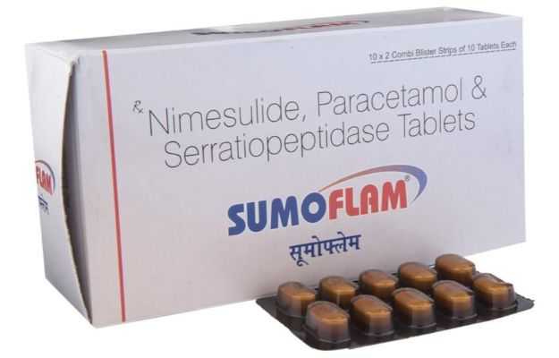 Sumoflam Tablet is a combination medicine used to relieve pain, fever, and inflammation. It works by blocking the release of chemicals in the body that trigger pain and swelling, while also supporting healing at the affected site.