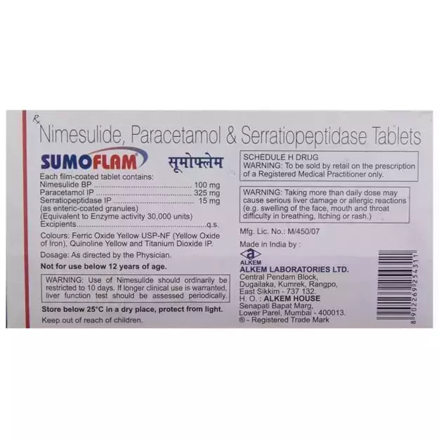 Note: According to the Ministry of Health and Family Welfare, Sumoflam Tablet is not recommended for children under 12 years of age.