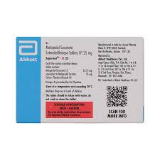 Supermet XL 25 Tablet belongs to the class of medications known as beta-blockers. It is commonly prescribed to manage high blood pressure (hypertension), heart-related chest pain (angina), and irregular heartbeats (arrhythmias). Additionally, it helps prevent migraines and lowers the risk of future heart attacks and strokes.