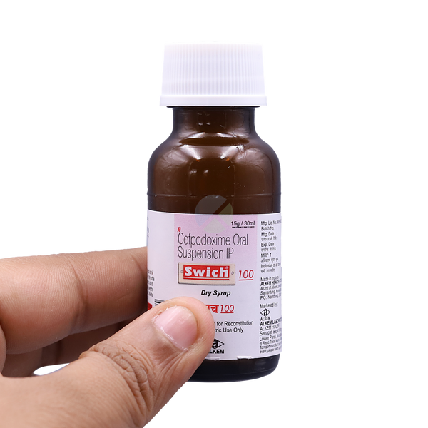Swich 100 Dry Syrup Pineapple is an antibiotic commonly prescribed for children to treat a wide variety of bacterial infections. It helps manage infections affecting the ears, eyes, nose, throat, lungs, skin, stomach, intestines, urinary tract, and can also be used in cases of typhoid fever in children and adolescents. This medicine should ideally be given one hour before or two hours after meals. If your child experiences stomach discomfort, it can be given with food. The dose is carefully decided by the doctor depending on the child’s age, weight, and severity of infection. If your child vomits within 30 minutes of taking the dose, you may repeat it. However, if the next dose is already due, do not double it. Since this is an antibiotic, it is not effective against viral illnesses such as the common cold or flu. It may be prescribed for cough or cold only if there is a confirmed bacterial infection along with it.