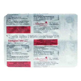 Switglim-MV 1/0.2 Tablet | Switglim MV Tablet | Switglim-MV Tablets Uses | Glimepiride + Metformin + Voglibose Tablets | Type 2 Diabetes Medicine | Anti-Diabetic Combination Tablet | Blood Sugar Control Tablets | Diabetes Management Medicine | Oral Hypoglycemic Drugs