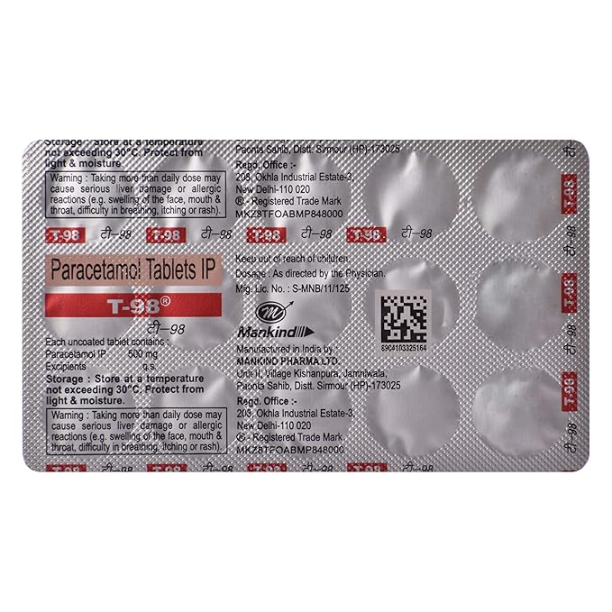 Keywords & Variants: T-98 Tablet, T-98 500mg, T-98 Pain Relief Tablet, T-98 Fever Tablet, T-98 Paracetamol, T-98 Analgesic Tablet, T-98 Antipyretic Tablet, T-98 Headache Relief, T-98 Migraine Medicine