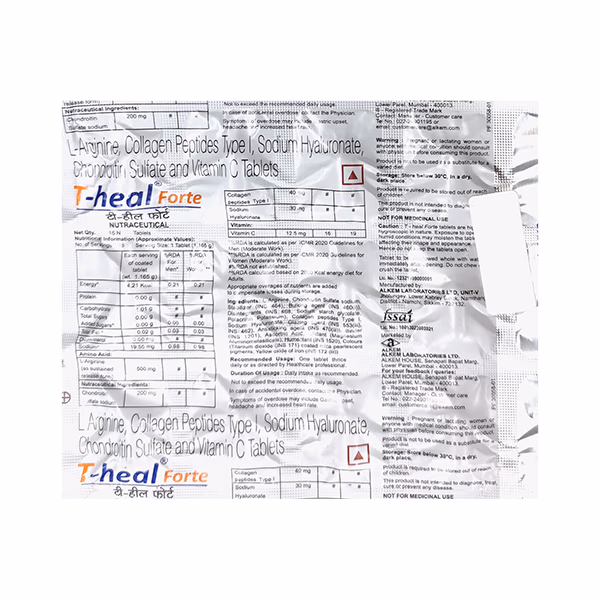 T-Heal Forte is a health supplement specially formulated to support joint, cartilage, bone, and connective tissue health. It helps reduce joint discomfort, improves flexibility, and promotes recovery in conditions where joints or tendons are strained or weakened.