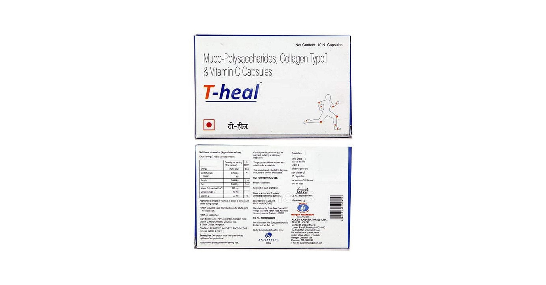 T-Heal Capsules are dietary supplements formulated with collagen, vitamin C, and mucopolysaccharides. These ingredients support joint and bone health, improve mobility, and help reduce discomfort in the joints and muscles.