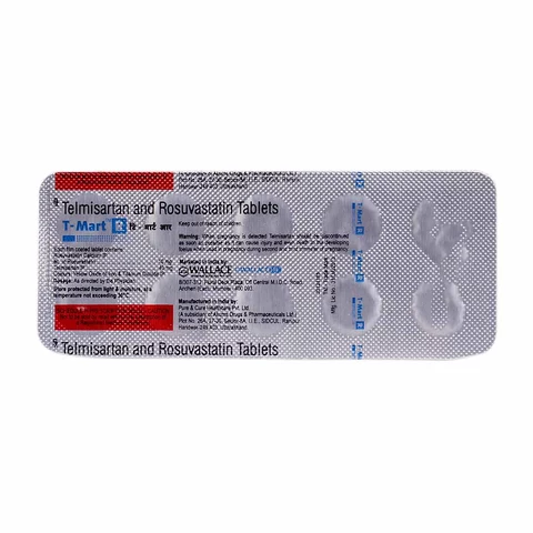 Keywords: T-Mart R Tablet, T-Mart R, T Mart R Tablet uses, T Mart R Tablet benefits, T-Mart R for high blood pressure, T-Mart R for cholesterol, Telmisartan Rosuvastatin tablet, T-Mart R Tablet price, T-Mart R side effects, T-Mart R dosage, blood pressure and cholesterol control tablet.