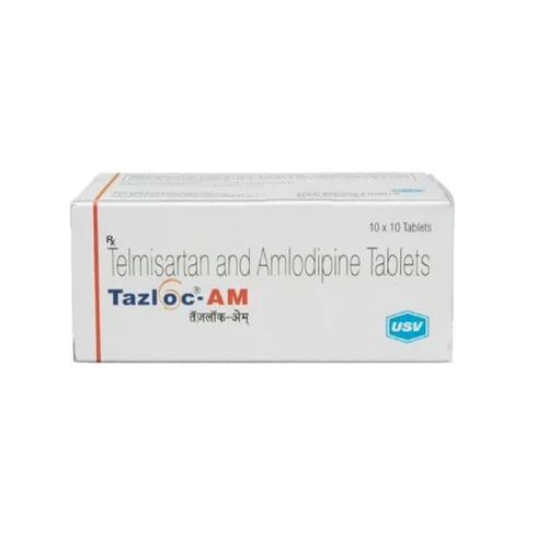 TAZLOC-AM Tablet is a dual-action prescription medicine designed to effectively manage high blood pressure (hypertension). It combines two active ingredients — Telmisartan and Amlodipine — that work together to relax blood vessels, improve blood flow, and reduce the strain on your heart. By maintaining optimal blood pressure levels, this medicine significantly lowers the risk of heart attack, stroke, and kidney-related complications.