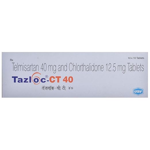 TAZLOC-CT 40 Tablet, TAZLOC CT 40, Telmisartan Chlorthalidone Tablets, High Blood Pressure Combination Tablets, Hypertension Management Tablets, Diuretic and ARB Combination, Blood Pressure Control Medication, Cardiovascular Health Tablets, Antihypertensive Tablets, TAZLOC-CT for Hypertension, Telmisartan 40mg + Chlorthalidone 12.5mg.