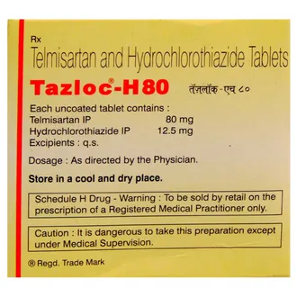 TAZLOC-H 80 Tablet, TAZLOC-H 80, Telmisartan Hydrochlorothiazide 80 mg, Dual Therapy Hypertension Tablets, High Blood Pressure Combination Tablet, Blood Pressure Management Medication, TAZLOC-H 80 for Hypertension, Cardiovascular Health Tablets, TAZLOC-H 80 Blood Pressure Control.