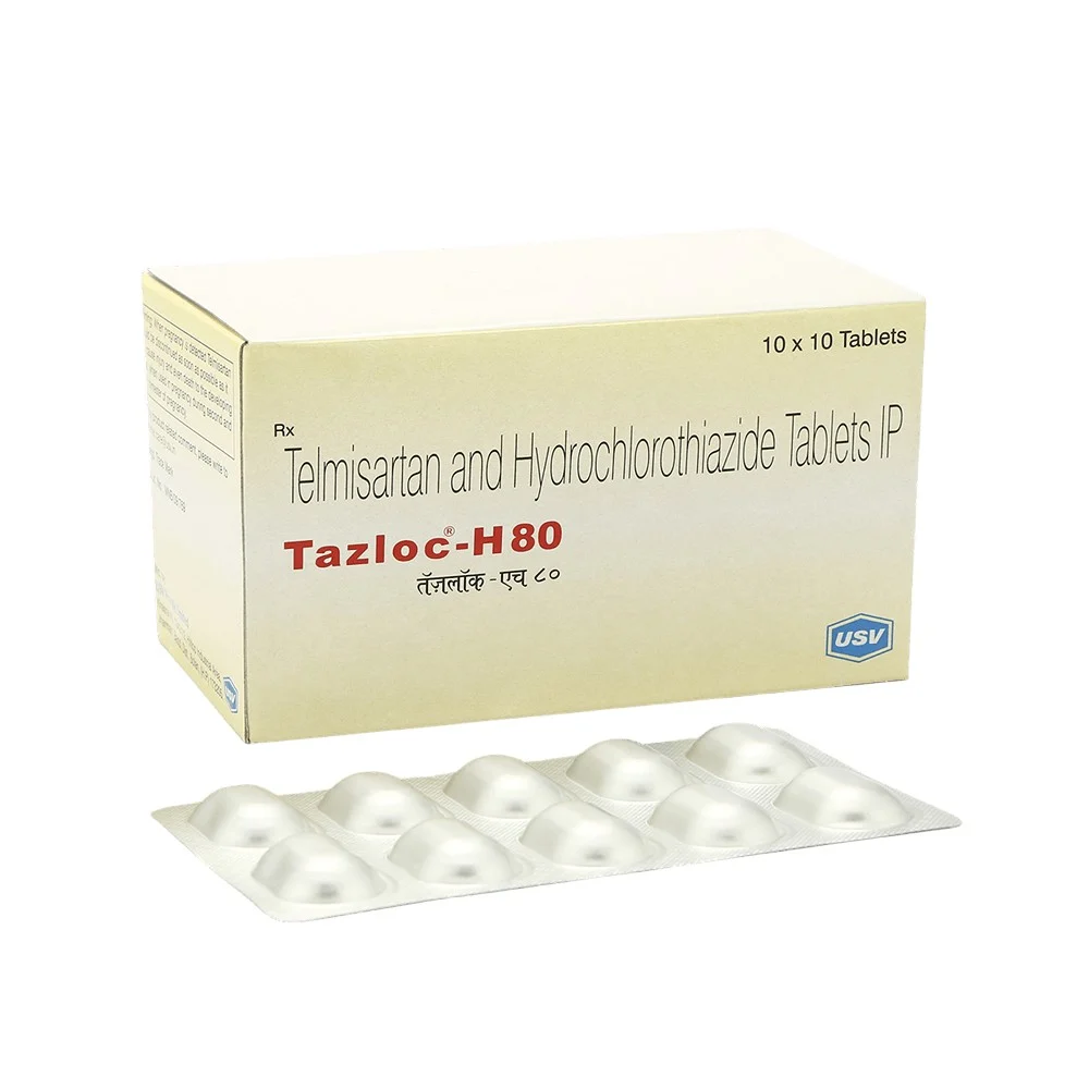 TAZLOC-H 80 Tablet is a dual-action medication formulated to manage high blood pressure (hypertension) in individuals whose condition is not fully controlled with a single medicine. By effectively lowering blood pressure, this tablet helps reduce the risk of serious cardiovascular events, including heart attacks, strokes, and kidney complications.
