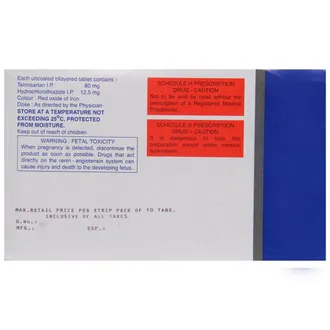 Telday 80 H Tablet combines two potent ingredients—Telmisartan and Hydrochlorothiazide. Telmisartan relaxes and widens blood vessels, allowing blood to flow more easily, while Hydrochlorothiazide acts as a diuretic, promoting the excretion of sodium and water to lower blood pressure. Regular use of this medicine helps maintain controlled blood pressure, reducing the risk of heart-related issues, stroke, and kidney damage. Though its effects may not be immediately noticeable, it provides long-term health benefits by keeping your cardiovascular system in balance.