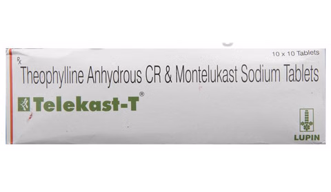 Telekast-T Tablet CR, Telekast-T 5 Tablet, Montelukast Combination Tablet, Asthma Preventer Tablet, Allergy Relief Tablet, Telekast-T for Respiratory Health, Anti-Allergic Medicine, Asthma & Allergy Control Tablet, Telekast-T for Exercise-Induced Asthma, Telekast-T Daily Use Tablet.