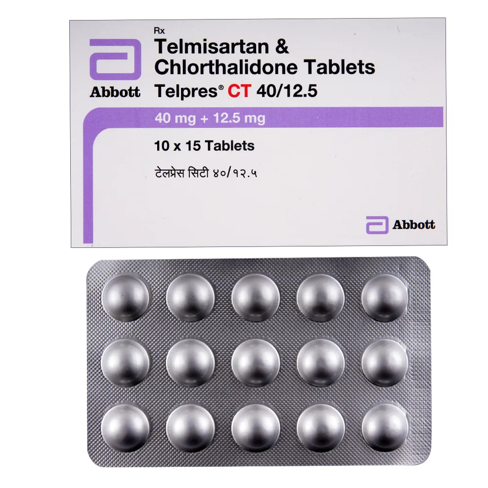 Telpres CT 40/12.5 Tablet combines two active ingredients designed to help manage high blood pressure (hypertension). Controlling blood pressure effectively lowers the risk of serious complications such as heart attacks and strokes.