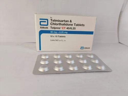 Telpres CT 40/6.25 combines Telmisartan, which blocks a hormone that causes blood vessels to tighten, resulting in vessel relaxation and improved blood flow, with Chlorthalidone, a diuretic that promotes increased urination to lower blood pressure.