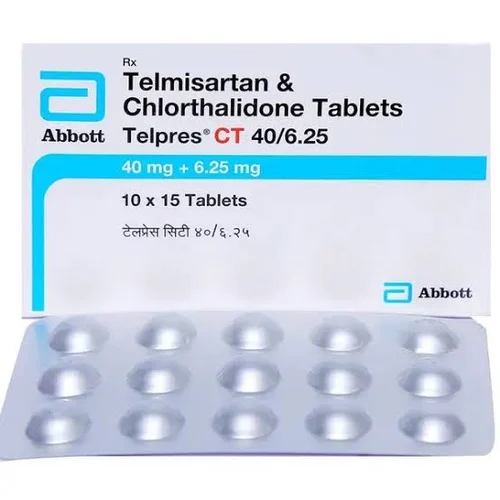 Telpres CT 40/6.25 Tablet contains two active ingredients: Telmisartan and Chlorthalidone. It is often prescribed when blood pressure is not adequately controlled with a single drug. Telmisartan helps relax and widen the blood vessels, allowing blood to flow more easily and lowering pressure. Chlorthalidone is a diuretic that increases urine output, reducing blood volume and pressure. Keeping blood pressure under control reduces the chance of heart attacks, strokes, and kidney damage. Although you might not notice immediate effects, regular use promotes long-term cardiovascular health.