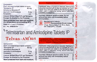 Telvas-AM 80/5 Tablet is a prescription medicine that combines two active ingredients which work together to control high blood pressure. It helps lower blood pressure by relaxing the blood vessels, allowing blood to flow more easily, and reducing the strain on the heart. By keeping blood pressure under control, this medicine lowers the chances of heart attacks, strokes, and other complications.