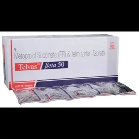 Telvas Beta 50 Tablet ER is a medication used to manage high blood pressure (hypertension). By helping to lower blood pressure, it plays an important role in reducing the risk of heart attacks and strokes. Starting treatment early can also improve survival rates for patients who have experienced a heart attack.
