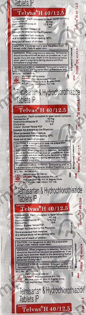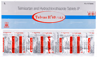 Telvas H 40/12.5 Tablet is prescribed for controlling high blood pressure and lowering the chances of complications linked to heart health. It contains two active ingredients: telmisartan, which helps relax and widen blood vessels so blood can flow more easily, and hydrochlorothiazide, a water pill that works by flushing out extra salt and fluid from the body.