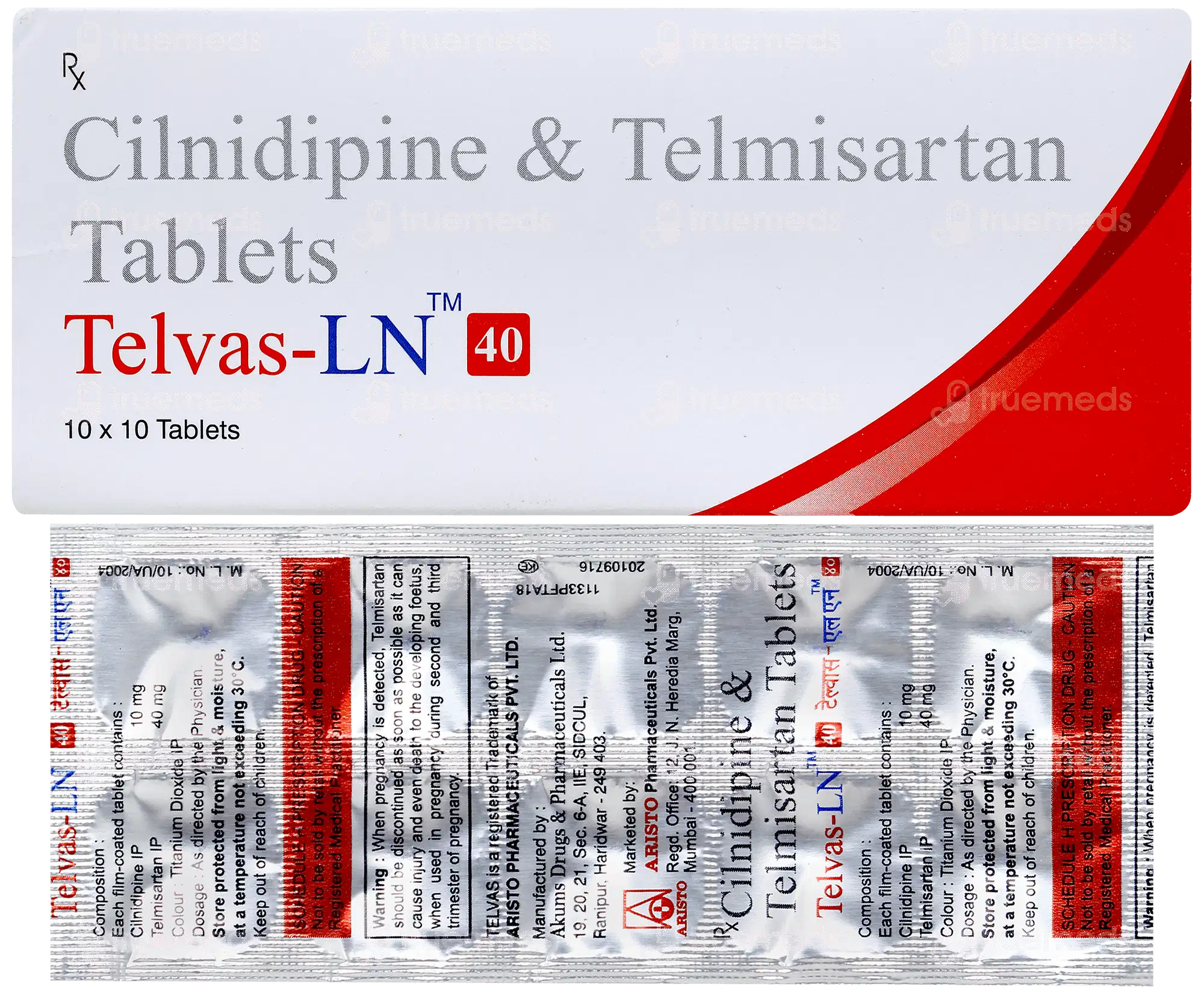 Telvas-LN 40 Tablet contains Cilnidipine and Telmisartan. Cilnidipine reduces blood pressure by preventing calcium from entering cells in blood vessels, helping them relax. Telmisartan blocks certain hormones that cause blood vessels to tighten, further promoting better blood flow and easing the heart’s workload.