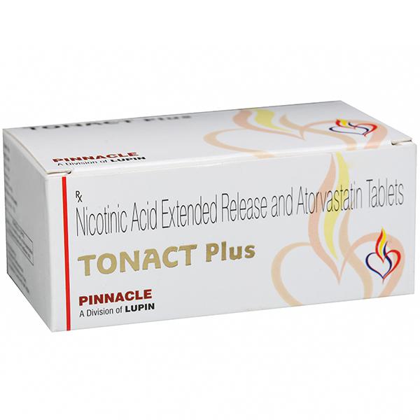 Tonact Plus Tablet ER is a potent combination therapy designed to manage high cholesterol and promote cardiovascular well-being. By reducing harmful cholesterol (LDL) and triglycerides while supporting overall lipid balance, it helps lower the risk of heart attacks, strokes, and other heart-related conditions. The inclusion of Vitamin B3 (Nicotinic Acid) enhances heart health, making this medication a comprehensive solution for managing elevated cholesterol levels.
