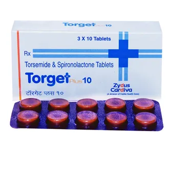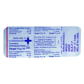 Torget Plus 10 Tablet combines Torasemide, a potent diuretic that removes excess salt and water, with Spironolactone, a potassium-sparing diuretic that prevents excessive potassium loss. This dual action reduces swelling, lowers blood pressure, and maintains electrolyte balance, making it effective for treating edema without major imbalances.
