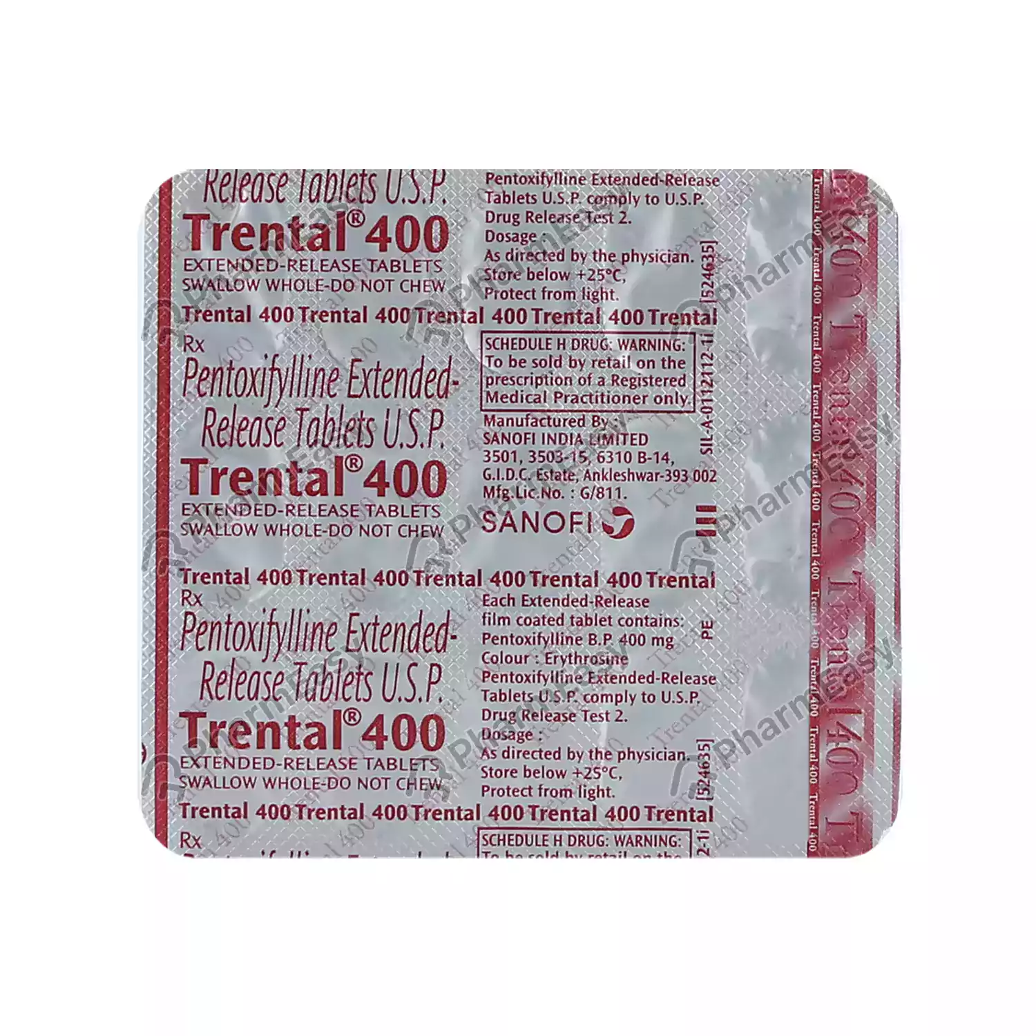 Take Trental 400 Tablet PR exactly as prescribed by your doctor. It should be taken with food to minimize stomach upset. Do not change your dose or stop the medication without consulting your healthcare provider.