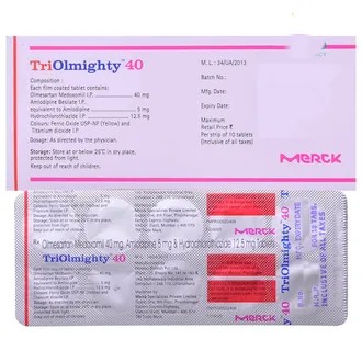 TRIolmighty 40 Tablet is a potent combination medication specially formulated for adults with high blood pressure that cannot be controlled by a single drug. By targeting multiple pathways that cause hypertension, it effectively lowers blood pressure, improves blood flow, and reduces the risk of heart attacks, strokes, and kidney complications.
