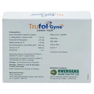 Trufol Gyne combines essential vitamins, including folic acid, iron, and other nutrients, to support proper maternal metabolism, red blood cell production, and healthy fetal growth. These nutrients are absorbed efficiently to ensure maximum benefit for both mother and baby.