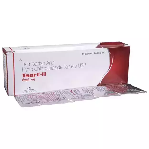 Take Tsart-H Tablet exactly as prescribed by your doctor. It can be taken with or without food, preferably at the same time every day. Swallow the tablet whole; do not chew or crush it. Continue taking the medicine regularly, even if you feel well, as stopping suddenly may increase your risk of complications. Since it increases urination, avoid taking it close to bedtime.