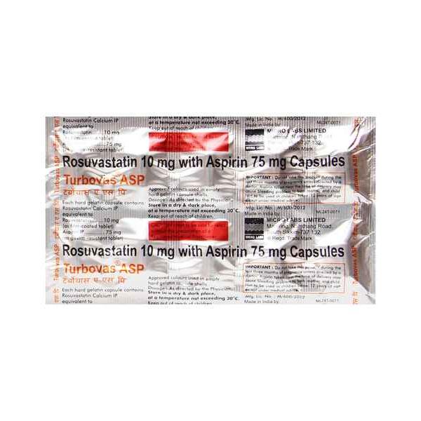 Turbovas ASP Capsule is used to support heart and blood vessel health. It combines two active ingredients that help prevent blood clots, improve blood circulation, and reduce the risk of heart attack or stroke. This makes it particularly useful for individuals at risk of cardiovascular events.