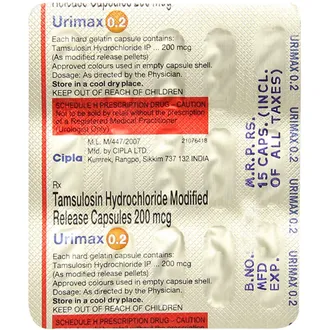 Urimax 0.2 Capsule MR, Urimax Capsule MR, Urimax 0.2mg, Urimax Tamsulosin 0.2, Urimax 0.2 for BPH, Urimax 0.2 Capsule for urinary problems, Urimax 0.2 dosage, Urimax 0.2 benefits, Urimax 0.2 side effects