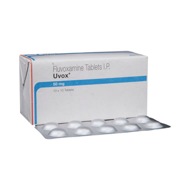 Uvox 50mg Tablet is an antidepressant classified under Selective Serotonin Reuptake Inhibitors (SSRIs). It is prescribed for managing depression and obsessive-compulsive disorder (OCD). The medication helps improve mood by increasing serotonin levels in the brain, a key chemical involved in emotional regulation. This medicine can be taken with or without food, depending on your doctor’s advice. The dosage is carefully determined based on your condition and response to treatment. Typically, a low dose is started and gradually increased if necessary. It is important not to alter or discontinue the medication without consulting your doctor, as doing so may lead to withdrawal symptoms such as anxiety, restlessness, dizziness, irregular heartbeat, or sleep disturbances. For best results, take the tablet at the same time each day. It might take a few weeks before noticeable improvements are seen. If there’s no improvement after four weeks, inform your doctor. Uvox 50mg is known to have fewer side effects compared to older antidepressants. Some commonly reported side effects include nausea, vomiting, fatigue, dry mouth, excessive sweating, tremors, sleep difficulties, reduced sexual desire, delayed ejaculation, and erectile dysfunction. A few individuals may feel drowsy after taking the medication. Notify your doctor if you observe any sudden mood changes or thoughts of self-harm. Before using this tablet, let your doctor know if you have conditions like epilepsy, diabetes, liver or kidney issues, heart problems, or glaucoma, as these may influence treatment decisions. Pregnant and breastfeeding women should consult their healthcare provider before use. This medication may interact with other drugs, particularly other antidepressants or MAO inhibitors, so it is important to inform your doctor about any other treatments you’re taking. Uvox 50mg improves emotional balance and helps individuals regain interest in daily activities, thereby enhancing quality of life. It is also effective in reducing the frequency and intensity of obsessive thoughts and compulsive behaviors in OCD patients. Most side effects are temporary and resolve as your body adjusts. These include sleepiness, nausea, dry mouth, sweating, digestive issues, loss of appetite, tremors, and reduced sexual function. Take the tablet whole with water—do not chew or crush it. Consistency is key, so take it at the same time daily. Uvox 50mg works by preventing the reuptake of serotonin, increasing its availability in the brain, which helps stabilize mood and reduce symptoms of depression and OCD. Avoid alcohol while using this medication, as it can worsen side effects like drowsiness. Use during pregnancy and breastfeeding should only be considered if clearly necessary, under medical advice. Though it typically does not affect driving ability, avoid operating machinery if you feel dizzy or sleepy. Caution is advised in patients with liver or kidney disease; dosage adjustments may be required. If you miss a dose, take it as soon as you remember. If it’s nearly time for your next dose, skip the missed one and continue your regular schedule. Do not take two doses at once.