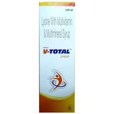 V-Total Syrup is a comprehensive multivitamin and mineral supplement that helps fulfill daily nutritional needs. It is designed to address deficiencies caused by poor diet or certain health conditions. This syrup strengthens immunity, supports overall health, and provides antioxidant protection to prevent cellular damage from free radicals. Additionally, it promotes cognitive function, supports heart health, and helps maintain normal cholesterol levels.