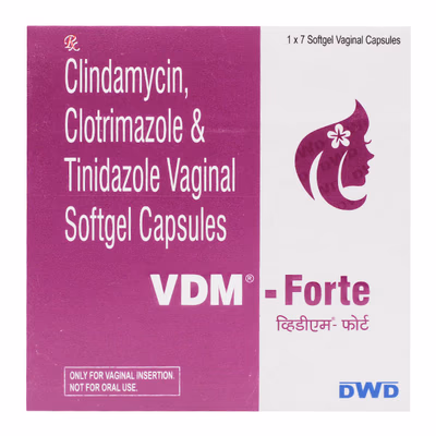 Vdm Forte 100mg/100mg/100mg Vaginal Capsule is a combination medicine formulated for the syndromic treatment of vaginal discharge. It works by targeting infection-causing microorganisms, stopping their growth, and preventing the further spread of infection. This treatment helps restore vaginal health and reduces discomfort caused by infections.