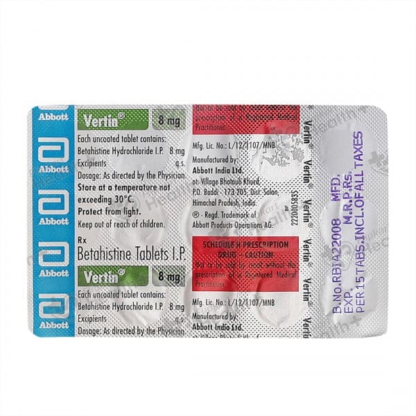 Vertin 8mg Tablet is commonly prescribed for managing Ménière’s disease, a condition affecting the inner ear. This disorder may lead to symptoms such as dizziness (vertigo), ringing in the ears (tinnitus), and hearing loss, often due to an excessive build-up of fluid in the ear. The medicine works by decreasing this fluid pressure, which helps relieve the symptoms.
