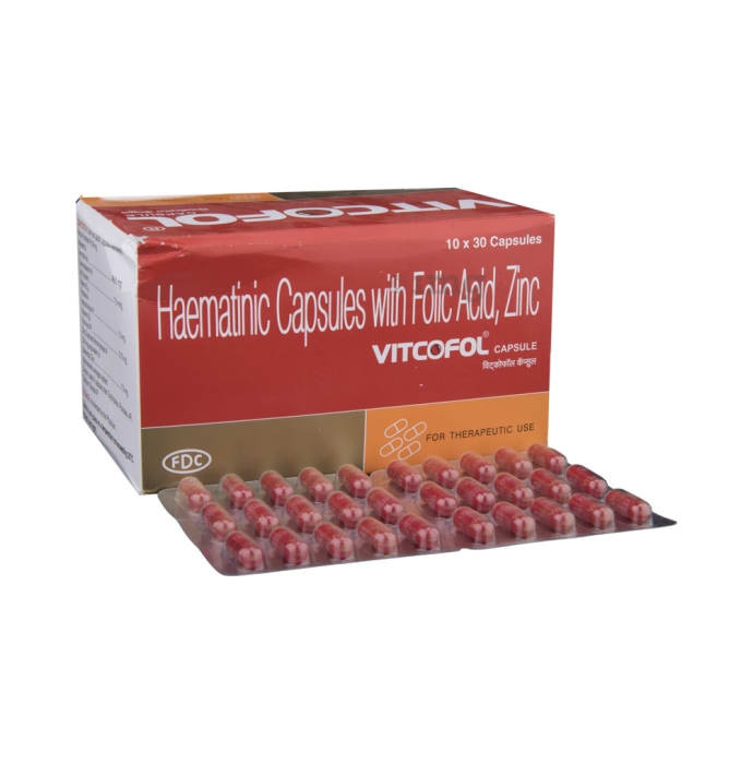 Product Variants & Keywords: Vitcofol Capsule, Buy Vitcofol Online, Vitcofol Iron Supplement, Vitamin B12 Capsule, Folic Acid Capsule, Vitcofol for Anemia, Immunity Booster Capsules, Multivitamin with Iron