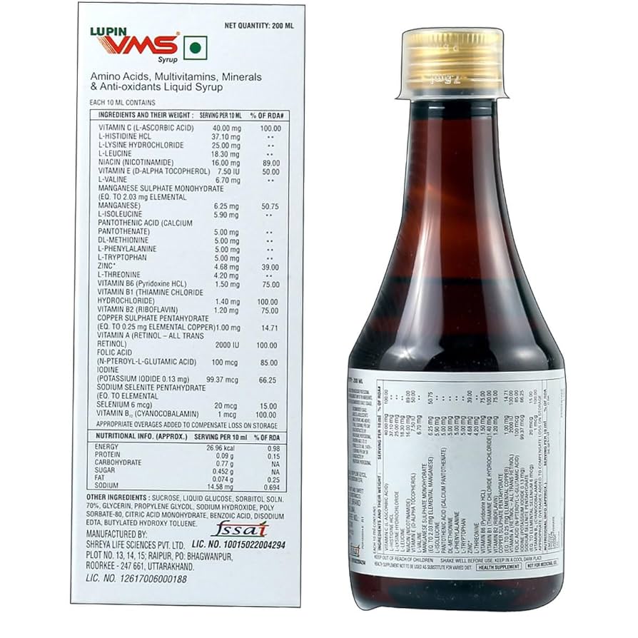 Use Vms Syrup as advised by your healthcare provider or as per label instructions. Shake well before use. The dosage may vary depending on age, nutritional needs, or medical condition.