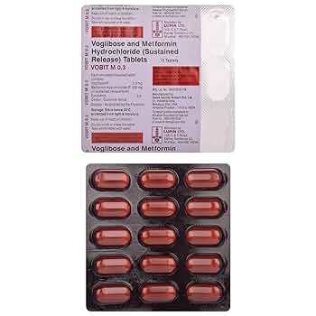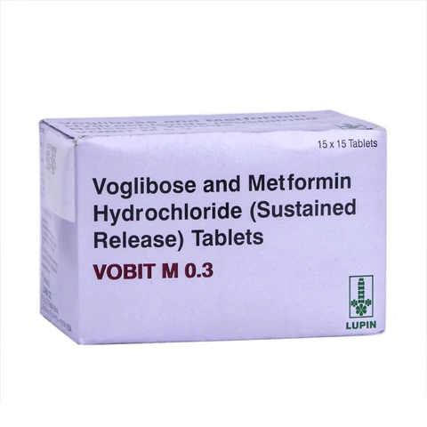 Vobit M 0.3 Tablet SR – Dual-Action Support for Type 2 Diabetes Management Vobit M 0.3 Tablet SR is an advanced oral medication designed to help adults with type 2 diabetes manage post-meal and overall blood sugar levels. This sustained-release tablet combines two powerful antidiabetic agents—Metformin and Acarbose—that work together to control blood glucose spikes, support insulin function, and prevent complications associated with uncontrolled diabetes. Taken alongside a balanced diet, regular physical activity, and lifestyle modifications, it provides an effective and sustained glycemic control throughout the day.