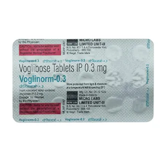 Voglinorm 0.3 Tablet is an anti-diabetic medicine used for managing type 2 diabetes mellitus. It helps control blood sugar levels after meals when diet and exercise alone, or in combination with other medicines, are not enough to keep blood sugar within range.