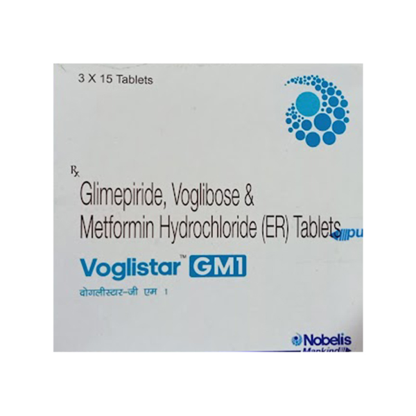 Product Variants & Keywords: Voglistar GM1 Tablet ER, Voglistar GM Tablet, Voglistar GM1 ER Tablet, Glimepiride Metformin Voglibose Tablet, diabetes combination medicine, triple-action antidiabetic tablet, extended-release sugar control tablet, type 2 diabetes oral medication India, blood glucose control medicine