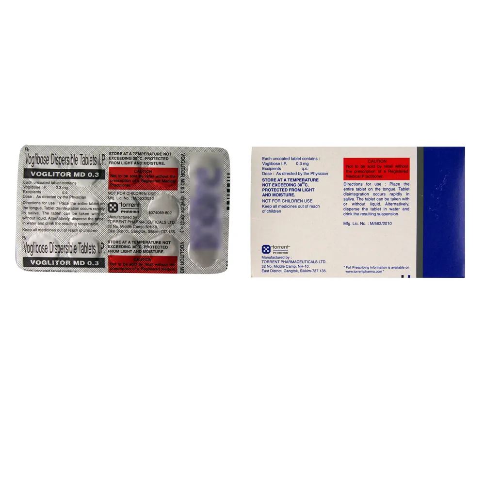 Product Variants & Keywords: Voglitor MD 0.3 Tablet, voglibose 0.3 mg tablet, type 2 diabetes treatment, post-meal blood sugar control, Voglitor tablet for diabetes, alpha-glucosidase inhibitor medicine, diabetes glucose management