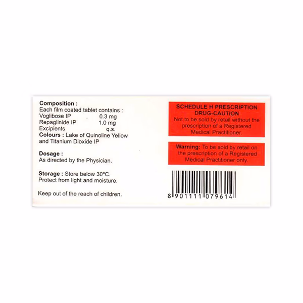 Volga R 1mg/0.3mg Tablet contains a combination of two active ingredients designed to manage type 2 diabetes mellitus by controlling elevated blood sugar levels after meals. This medication is prescribed when diet and other similar treatments have not adequately controlled high glucose levels.