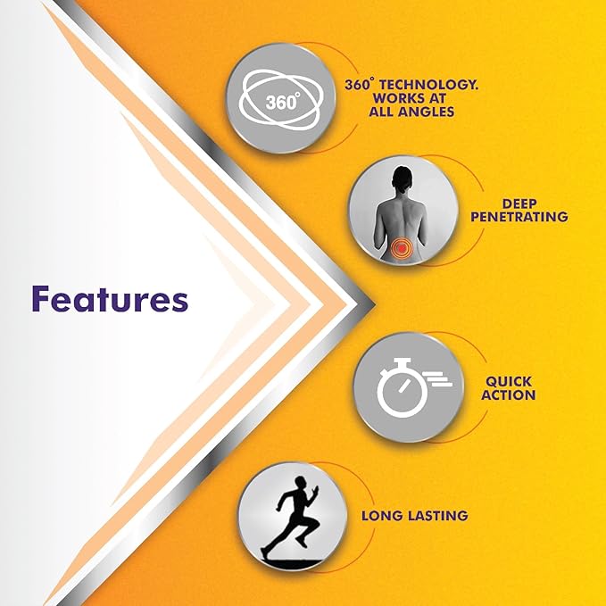 Quick onset of action to relieve pain within minutes, Deep tissue penetration for long-lasting relief—up to 12 hours, No need to rub—minimizes hand contact and reduces mess, Reduces inflammation and helps restore mobility, Safe for everyday use under proper guidance