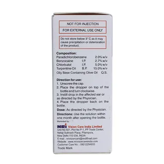 Formulated with a combination of active agents including Benzocaine, Chlorbutol, Paradichlorobenzene, and Turpentine Oil, this solution works on multiple levels. Benzocaine provides fast pain relief by numbing the affected area, while Chlorbutol acts as a preservative to ensure safety during use. Paradichlorobenzene effectively breaks down wax buildup and provides mild antibacterial and antifungal protection. Turpentine Oil serves as a natural lubricant, supporting smooth wax removal and preventing dryness in the ear canal.