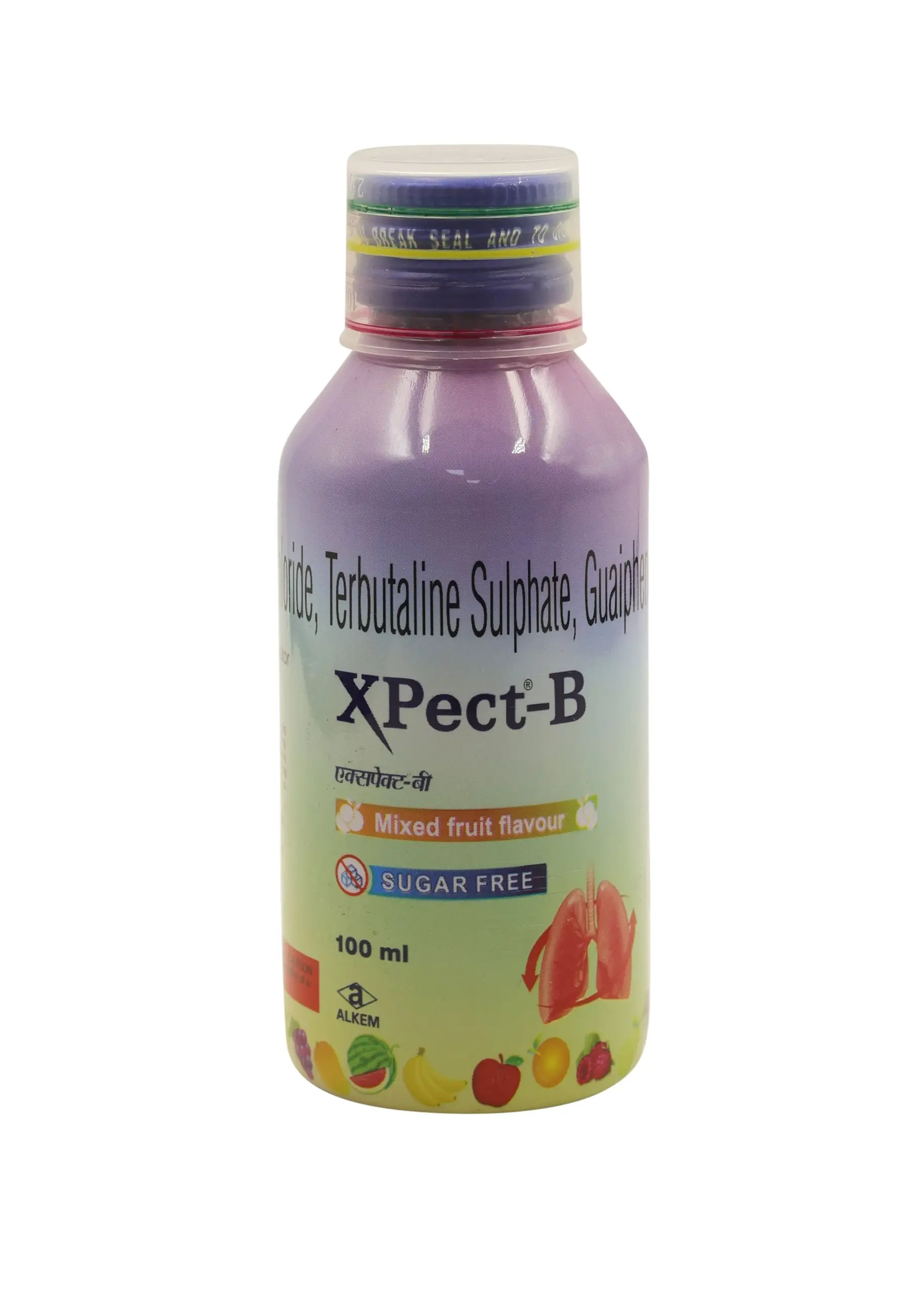 Xpect-B Expectorant Mixed Fruit Sugar Free, Xpect-B Sugar-Free Cough Syrup, Buy Xpect-B Expectorant Online, Xpect-B Ambroxol Guaifenesin Menthol Terbutaline, Xpect-B for Wet Cough Relief, Xpect-B Cough Syrup for Diabetics, Xpect-B Mixed Fruit Flavor